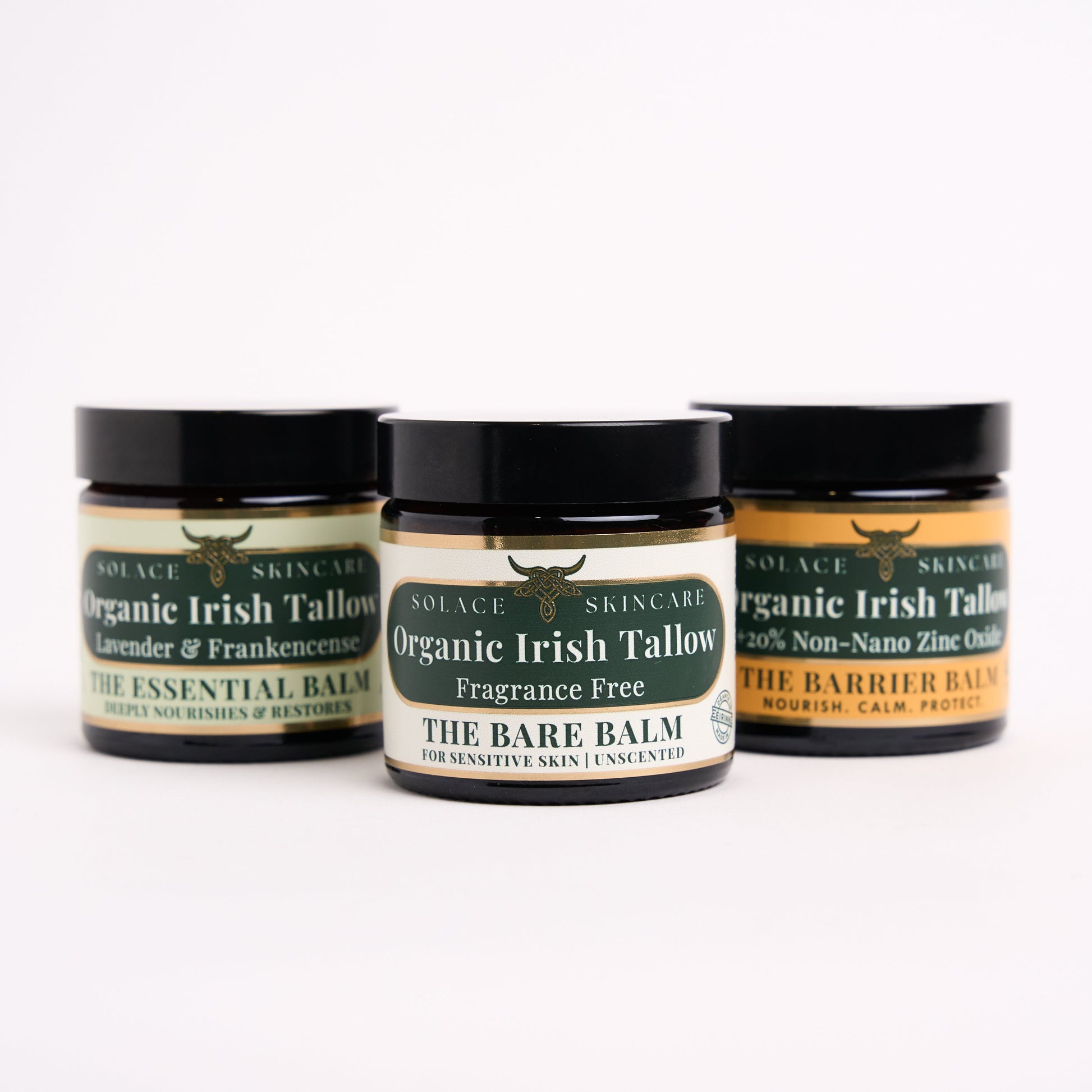 The Complete Balm Collection brings together our three signature tallow-based balms, each handcrafted in Moycullen using organic, Irish-sourced ingredients and grass-fed Irish beef tallow. This collection offers a complete skincare ritual suitable for face and body, and especially loved by those with sensitive or reactive skin.